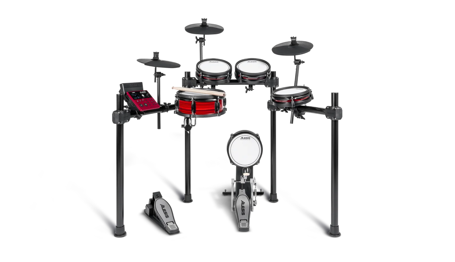 - Kick and hi-hat controller foot pedals provide precise response