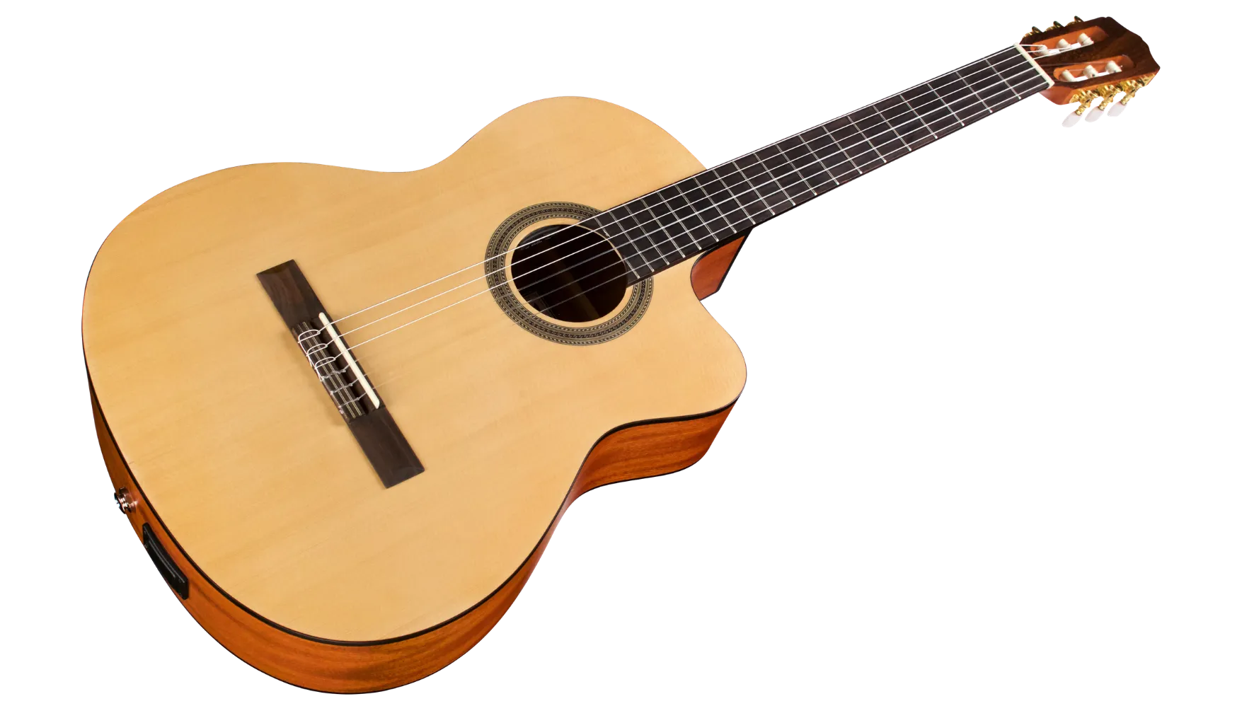 The Protégé by Córdoba C1M-CE is the top choice nylon string guitar for students of all levels and is perfectly suited for both the classroom and home. Comfortable and easy to play, it's a great first guitar at an affordable price. The C1M-CE features a cutaway body shape for easier access to the higher frets and a Fishman Presys VT Pickup System for amplified or acoustic playing. Every Protégé C1M-CE is built with a Spruce top, Mahogany back and sides, a comfortable, slim neck profile, traditional mosaic rosette, and a matte polyurethane finish. Like all Córdoba instruments, C1M-CE models feature premium Savarez strings and an adjustable truss rod for lifetime neck stability.