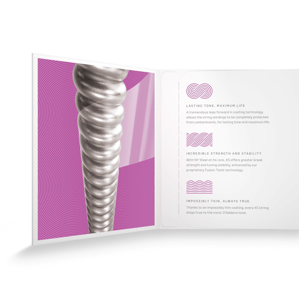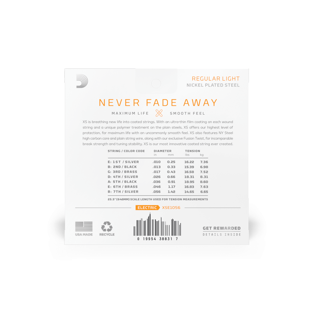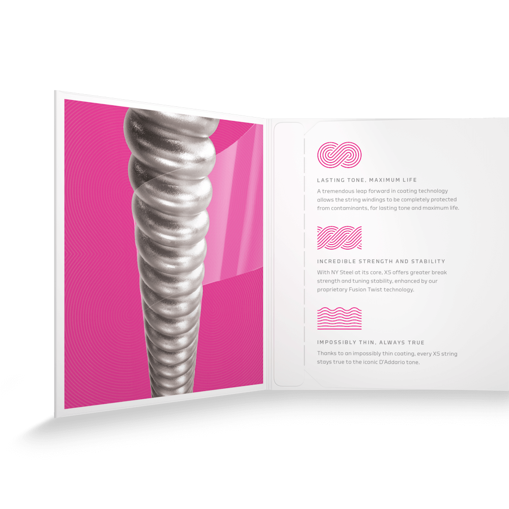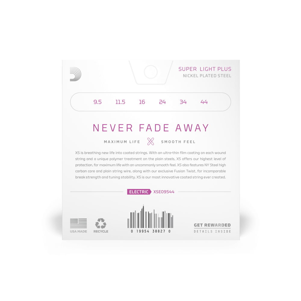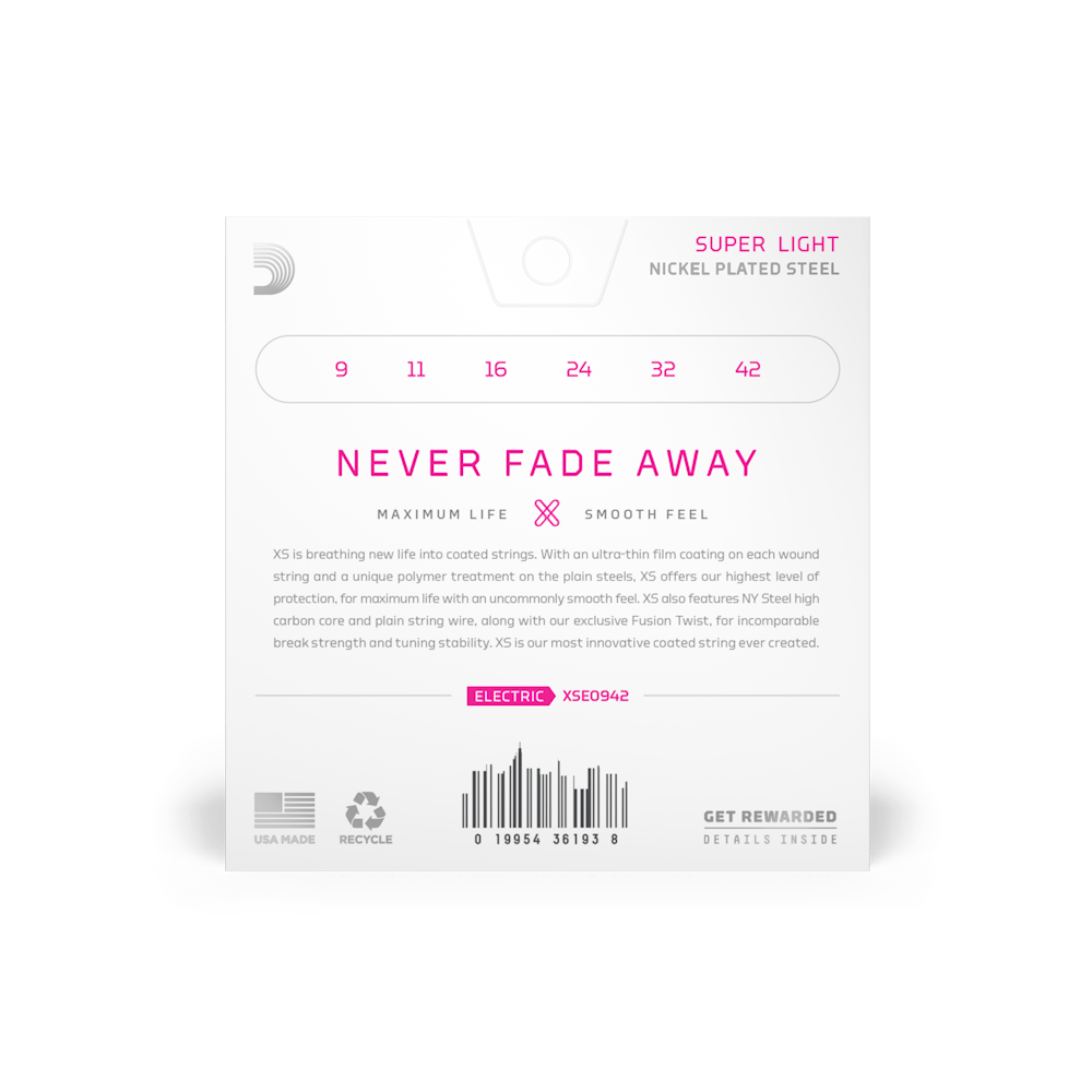 XS Nickel coated electric guitar strings provide the longest life of any D’Addario electric guitar string. Coated with our groundbreaking XS coating, these premium electric strings attain maximum life and a smooth, fast feel without dampening their outstanding tone. Constructed with a NY Steel core, reformulated nickel-plated steel wrap wire, and Fusion Twist technology, XS Nickel strings boast superior strength and tuning stability, plus richer harmonics, greater clarity, and remarkable definition with every sweep, slide, and bend.