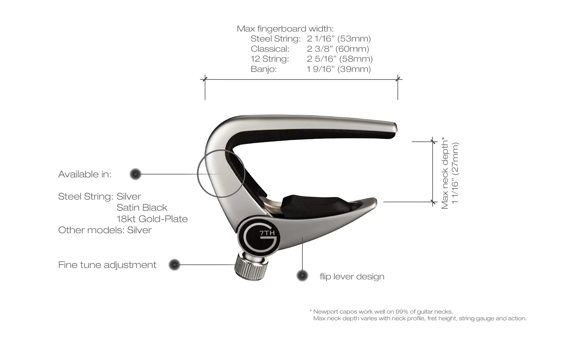The G7th Newport is meticulously designed for your fretting hand, eyes and ears.