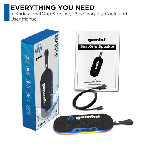 Grip the beat anywhere with the Gemini BeatGrip Magnetic Bluetooth Speaker—a portable, weather-resistant speaker that effortlessly attaches to any metal surface, making it the ideal magnetic golf cart speaker. Perfect for golf enthusiasts and casual listeners alike, this portable Bluetooth speaker delivers high-quality audio for music, podcasts, and calls. Its compact, lightweight design features vibrant LED party lights to set the mood. With up to 12 hours of battery life and seamless wireless connectivity, your entertainment goes uninterrupted. The IPX6 weather-resistant build ensures durability on the golf course, during outdoor adventures, or at home. Elevate your sound experience with this versatile magnet speaker—the ultimate portable companion for on-the-go lifestyles and the perfect addition to your golf cart.