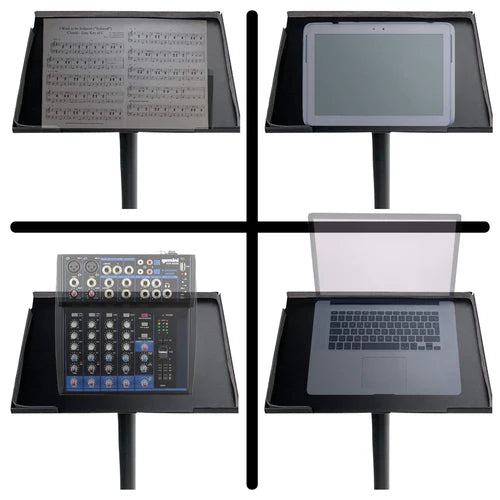 Gemini's PST-01 is truly jack of all trades when it comes to music stands. Whether it be a laptop, projector, sheet music, controller, turntable, MDJ etc. this is the stand for you. With the built-in adjustment pin, the PST-01 will stay where you set it, no matter how much movement. The PST-01 is also made with high class steel, so needless to say: this stand is both durable and dependable.